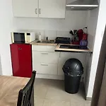 A 20 m^2-es apartman biztosít egy teljesen felszerelt konyhát minden szükséges eszközzel ételek készítéséhez.